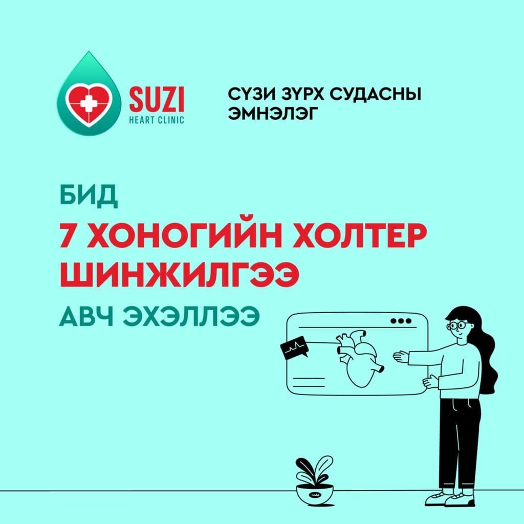 Зүрх, судасны СҮЗИ эмнэлэг нь зүрхний эхо, 7 хоногийн болон 24 цагийн зүрхний бичлэг, 24 цагийн даралтын аппарат зэрэг сүүлийн үеийн тоног төхөөрөмжүүдийг ашиглан оношилгоо, эмчилгээг олон улсын чанар, стандартад нийцүүлэн хийж байна.